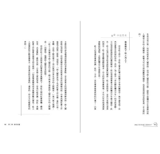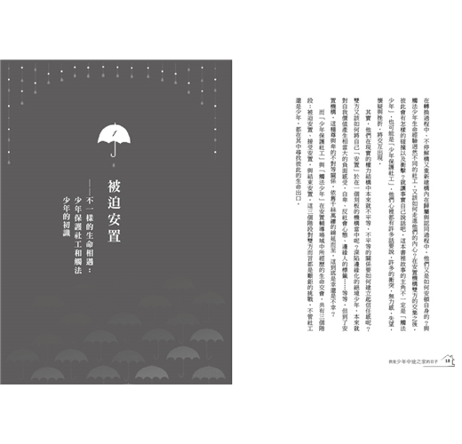撰寫本書時,我一直試著同理思考,這些觸法少年究竟是以怎樣的想法來理解這段變動的生命經歷?變動過程中,他們不斷重新解構內在歸屬與認同歷程,而他們又該如何安頓自身呢?本書焦點是在「少年保護社工」與「觸法少年」在安置機構的相遇,在生命交會的過程中將有怎樣的碰撞與衝擊?同時,由於觸法少年與和少年保護社工在安置機構中,彼此權力結構不均等,信任感又該如何建立呢?