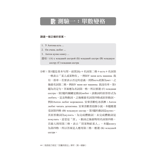 ▍俄語檢定第一級「詞彙與語法」1090題模擬試題,100%逐題詳解及翻譯!