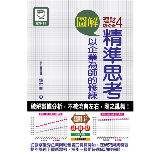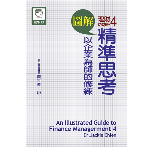這本《圖解理財幼幼班4:一樣從行為經濟學出發,從人的社會互動到核心價值來論述如何將個人經營得和企業一樣成功,就像蘋果創辦人賈伯斯和亞馬遜創辦人傑夫‧貝索斯一樣展現獨特個人魅力。在這本理財幼幼班4中,作者從觀察企業的經營模式,以及優秀企業與經營者的特質,整理出本書的知識體系,也點出常見的人性缺點,希望能在舉例、實務、研究與個人獨特觀點的交錯論述下,給予讀者一個重新思考如何有效成長的方向。