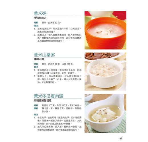 材料 南瓜200克,薏米、白米各50克,泡發銀耳20克,枸杞子5克。