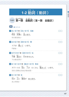先以詞性分成「名詞」、「動詞」、「形容詞」、「副詞」、「接頭語‧接尾語」、「疑問詞‧接續詞」等,再以主題細分,例如名詞有「交通」、「建築物」、「指示語」、「學校」、「飲食」……等主題。