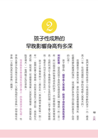 孩子正常發育到十二歲左右(男孩通常會延後一到二年),就開始進入青春期。但如果女孩在八歲之前,男孩在九歲之前,就有第二性徵發育現象(女孩乳房發育,男孩睪丸和陰莖增大。)我們稱之為性早熟。
