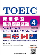 本書內容完全比照2018年3月即將上路的TOEIC新制題型出題,全書包含完整的聽力、閱讀模擬試題,以及口說、寫作測驗。試題後附有詳細解詳讀本書,必能幫助考生,一次就學好聽、說、讀、寫。書內附有MP3一片,「聽力部分」由美、加、英、澳四國播音員錄製,讀者只要反覆聆聽,必能熟悉四種不同的口音,從容應試。「口說部分」則由美籍播音員,以標準的美國音朗誦答題範例,供考生模仿學習。