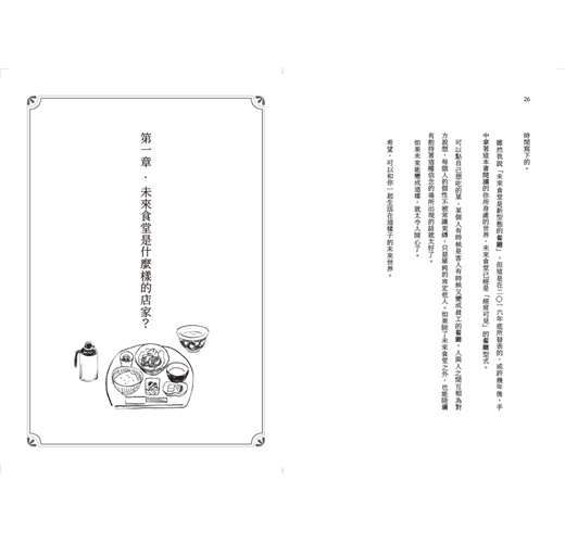 前言 你好,初次見面,我是未來食堂的店主小林世界。 未來食堂是位在東京神保町,只有十二個座位的小小定食餐廳。 或許有些人會疑惑,「這麼小的定食餐廳為什麼也能出一本書呢?」 未來食堂一天只提供一種定食,但是每天都會更換菜單,也就是每天不同卻只有一種選擇的定食餐廳(順帶一提,今天是牛排定食)。 你是否覺得「沒有菜單的話,不就剝奪了客人選擇餐點的樂趣嗎?」 「比起只有五種餐點,提供五十種餐點的菜單,可以滿足客人需求的機率也提高了十倍之多」,如果按照這個思考邏輯,那麼在未來食堂用餐或許真的沒有任何樂趣...