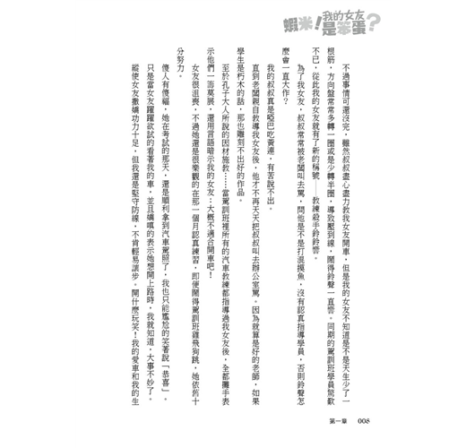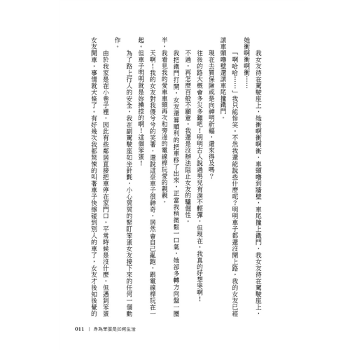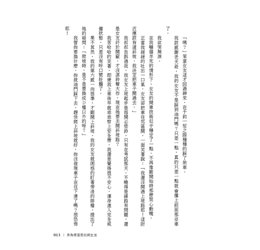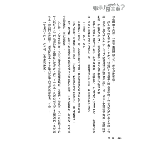 即便只是參加汽車駕訓班,她卻可以讓教練像是待在十八層地獄痛不欲生。更可怕的是,最後她真的拿到駕照,而且還要拉我上路!幸好我命夠大,不然這個上路,真的就是上路啦!