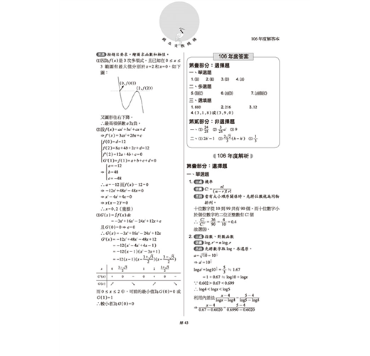 坊間對於多選題題解,僅將各個選項的解答概略寫出,並未標明是非對錯,同學常常得翻回題目頁面,才能逐一對照檢視各選項敘述,有鑒於此,鶴立解題王將解答本獨立成冊,更將題目中每個選項逐一詳細解析,讓同學不僅知其然,更知其所以然。