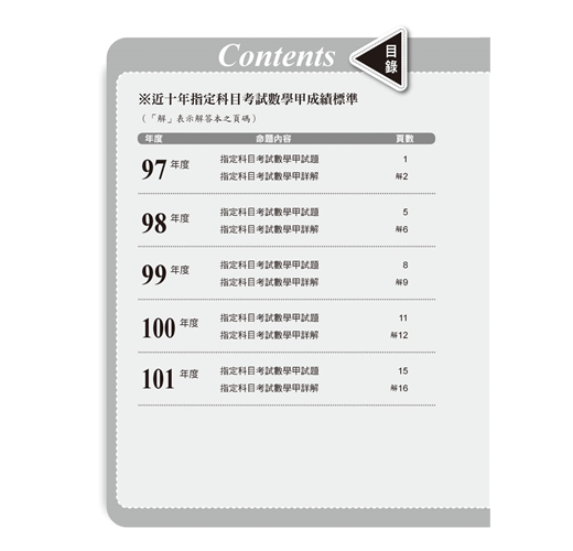 延攬超強補教名師,以其多年豐富的教學經驗,逐題編寫詳盡的解析,對於難度甚高的整合題型更有精闢的剖析。歷屆試題破題的關鍵在於能否連結到相關主題內容,因此詳列題目出處,讓同學養成具備所有應考觀念的能力,實力才得以發揮甚而游刃有餘;此外,每題輔以思路概述,讓同學們能將定理及性質重新複習一遍,進而加深學習印象。解題錦囊則針對解題撇步與超強公式,作出全面性的整理。