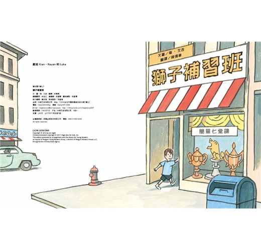 小男孩漫步在掛滿招牌的街道上,這是一條補習街,不論空手道、西班牙語、手工編織和烹飪課…各式課程應有盡有。不過,小男孩對這些都不感興趣,他只想上──獅子補習班!