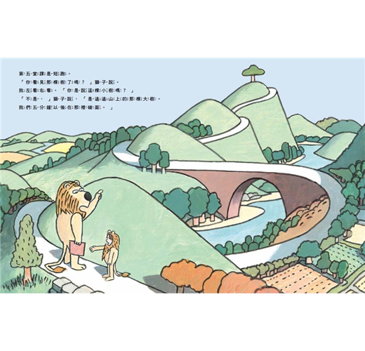 ◎《獅子補習班》的生動插畫描繪出許多細節,搭配白色背景中的簡單文句,讓讀者在閱讀故事時,能將焦點放在人物的細節上,並關注角色後來的行動。這本書的插畫很好的運用線條來表現運動的動態,在學習短跑的頁面,那條通往山丘上樹木的漫長道路,透過環繞周遭景致的彎曲線條,充分表達出路途漫漫的意象。這本書幽默有趣,簡單易懂的情節和想成為獅子的奇思妙想,小讀者一定會喜歡。──葛拉斯
