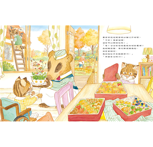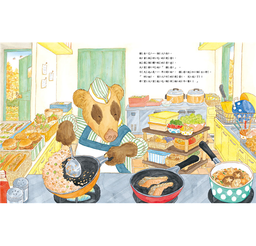和《獾爸便當店》一樣,一翻開書頁,首先映入眼簾的是精緻、豐富、色彩明亮、看起來美味極了的各式便當。光是這一頁,就讓人忍不住流口水、肚子也餓起了,不過心情實在好極了!