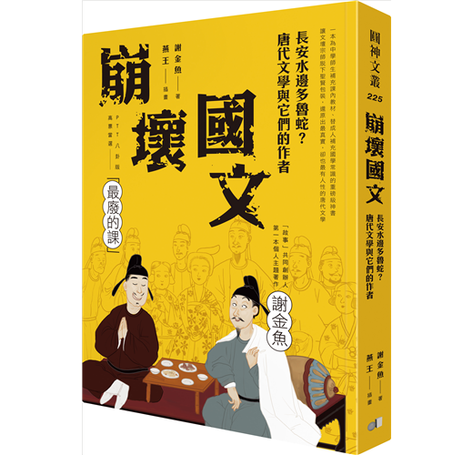 只是以前的國文課多半讀不到。老師不能教、課本不敢寫當然有其背景因素,或許是趕課時數壓力,或許也可能礙於教忠教孝文化傳承、繼往聖而開太平的使命。 當然說實話,這幾年的教學現場、國文課程變革甚大,從教師到主事者都在力圖變革,第一線的老師們也早不再搞那些造神的教材教法了。只是我有時與中學教師座談,教學的困境、考試的領導仍然牽扯轇葛著我們這一代的國語文教育。因此,即便金魚以《崩壞國文》為書名,看似要搞翻案鬧革命,但說到底,《崩》仍是非常適合作為社會成人補充國學常識、中學師生補充課內教材的神書。 這麼一想,其實也沒什麼真正崩壞的地方。
