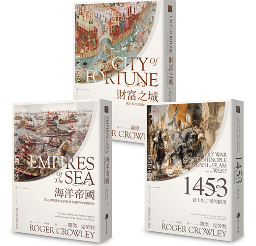 《海洋帝國》、《一四五三》和《財富之城》這三本書互相關聯,組成了一個鬆散的三部曲,敘述地中海及其周邊地區的歷史。讀者可以挑選其中任意一本書開始讀起。這三本書涵蓋的時間達四個世紀之久,從西元一二○○至一六○○年,這是基督教與伊斯蘭文明間激烈衝突的年代,涉及一連串的帝國,包括拜占庭帝國、鄂圖曼帝國,以及位處西班牙,信仰天主教的哈布斯堡王朝。……我希望這三本書能夠幫助台灣讀者,對仍在影響我們世界的地中海歷史與事件的魅力與重要性有一層更深的理解。──作者羅傑.克勞利中文版序