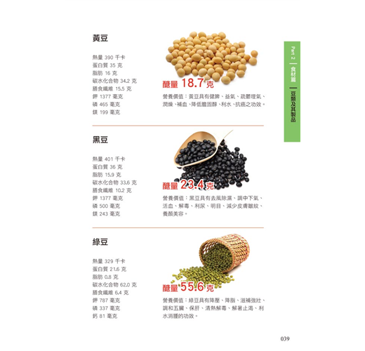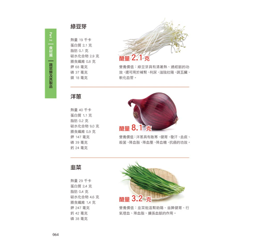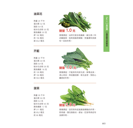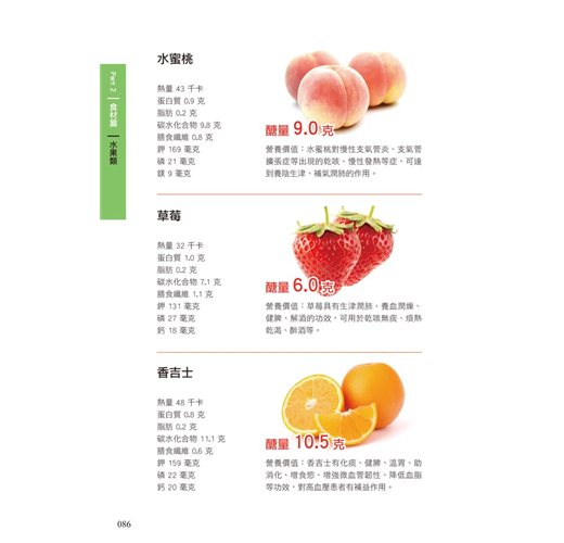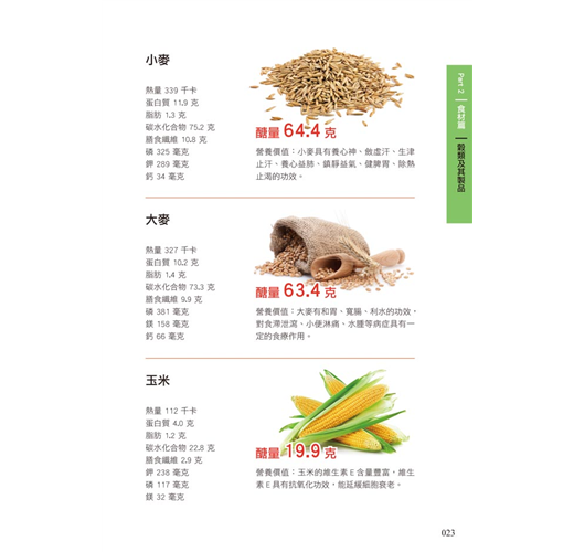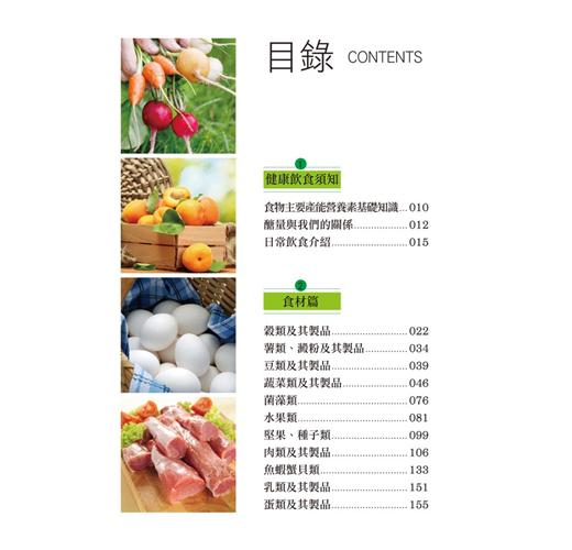 ◎分門別類詳細食物營養分析:蔬菜、水果、穀類、肉類、海鮮、零食、調味料……等,詳列500種常見食物的所含營養成分以及營養價值。