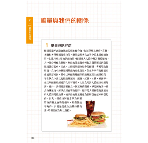 ◎想瘦?先了解醣量與我們的關係:除了食物營養素基礎知識及日常飲食介紹之外,還需知道醣量是如何造成肥胖以及糖尿病等症狀。
