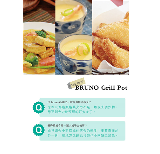 一眾資深食譜博客、作者及主廚們都對它大讚不已!繼《BRUNO 主廚神器の究極料理》後,雲集全城人氣主廚分享經驗,幻變出6 種不同BRUNO 烹調變化,各不相同,各具特色!