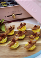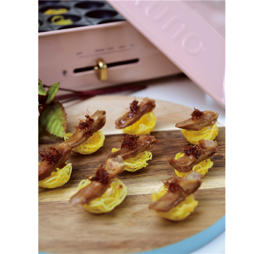 派對不比盛宴,食物只是配角,而多骨、大件的食物,即便香氣四溢、外觀吸引,也對參與派對者帶來麻煩,將時間花在飲食上,且一般沒有讓人坐下來慢慢吃的場地。因此,Bruno在派對上除了能弄即吃,保持新鮮溫熱,更是精緻美觀,讓人一口吃盡,方便又美味。