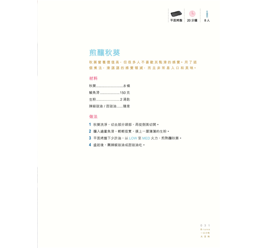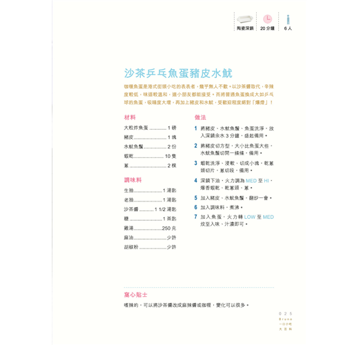 詳細步驟刺激讀者思考,在家自煮之餘,也嘗試創新食譜,發揮Bruno及食材的可能性。