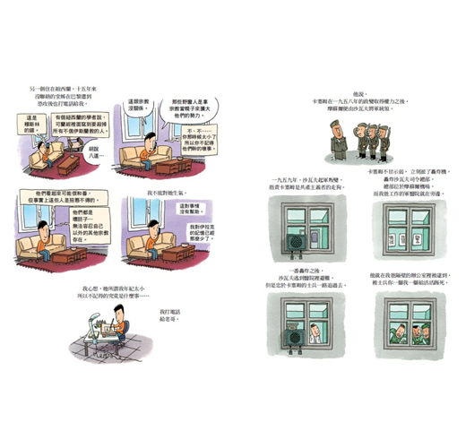 國際政經角力、軍事戰亂的大敘事,往往隱蔽了眾多小人物的故事。這本漫畫用貌似輕盈的筆法,娓娓道出一個跨境家族的悲歡離合。也提醒了我,伊拉克絕不只是國際新聞裡的伊拉克,而是有血有肉、有笑有淚、由許多面貌心思各異的人們所組成的複雜國度。