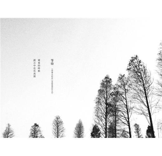 「我們手無寸鐵的等待/那些玫瑰花開的日子/比所有事物更遙遠/從此我們的居所/我們的婚宴,只想要/一個太陽、一個月亮」