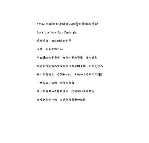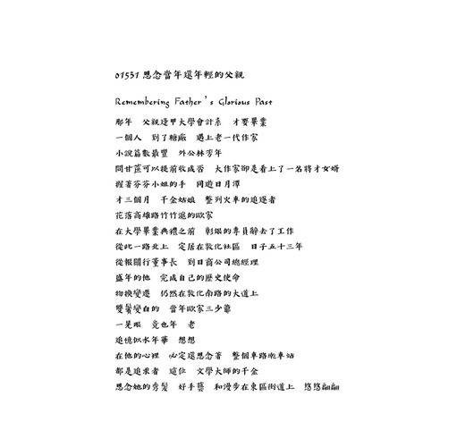 曾任宏仁女中英語讀者劇場社長,目前致力於中英短文寫作。