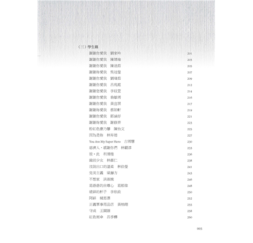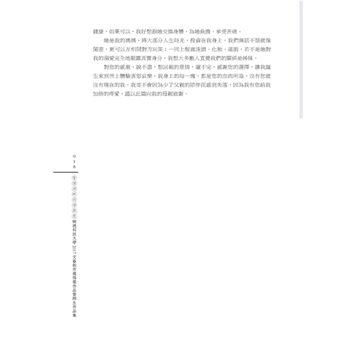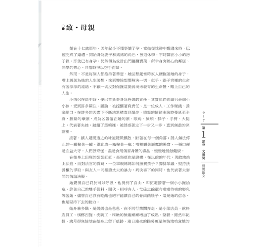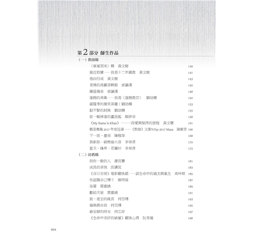 本書除了2017文藝創作獎得獎作品之外,尚編入同年度師生優良文作。這些佳構,概為每位作者最新力作,或是其讀書心得,或是其生活感受,無論就生活應用或生命啟示盱衡,皆有其意義與價值。