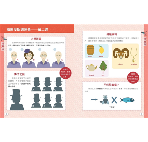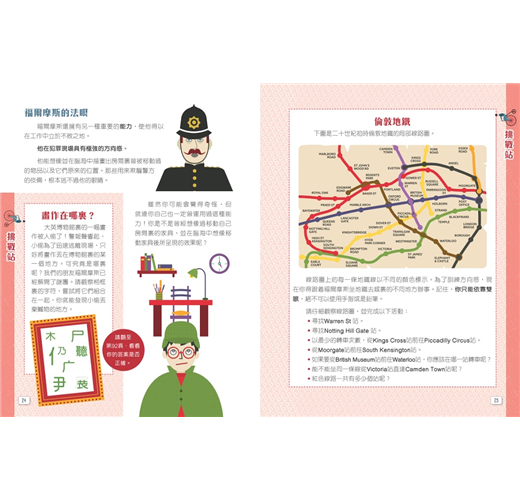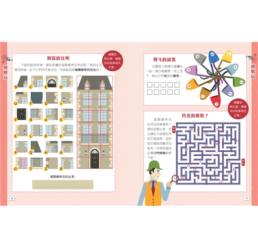 書中穿插着不同難度的「挑戰站」、多個訓練破案頭腦的活動和小遊戲,增加孩子閱讀的投入感。