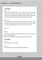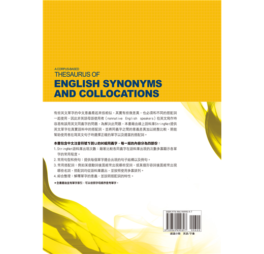 在此解釋同一組同義字個別單字的中文意義,參考Longman online Dictionary(http://www.ldoceonline.com/), the Free Dictionary by Farlex(http://www.thefreedictionary.com/)等線上字典,並說明搭配詞的特性,以幫助讀者比較同義字之間意義與搭配詞的異同,在寫作時能選擇正確的單字及正確的搭配詞。全書最後並有單字索引,可以依照字母順序查考單字。