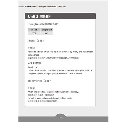 StringNet語料庫出現次數 liberal(adj.) enlightened(adj.) 綜合整理