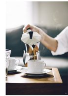 . 並非所有飲料都上相,拍攝時不妨為它們上點妝,在造型和道具上斟酌。以蔬菜汁為例,可在桌上添加的基本造型物是冰塊、食材、食器(吸管)、攪拌匙等。手是不錯的造型幫手,冬天穿著暖厚的毛衣,手捧一杯熱可可,多溫暖。拍攝時多方嘗試不同角度和構圖,將場景氛圍納入考量。