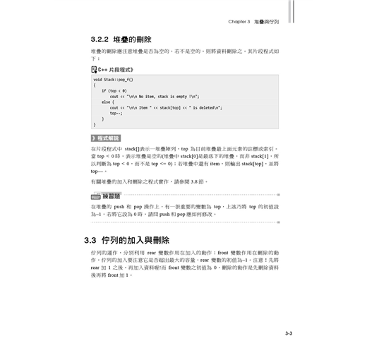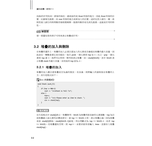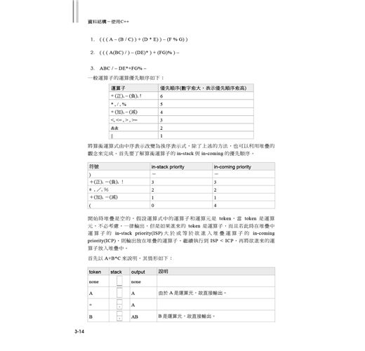 每一章的每一小節幾乎都附有“練習題”,讓使用者能藉由測驗,評量自己對此節的了解程度;而書末亦附有這些練習題的參考解答可供對答使用。章末再附上“動動腦時間”,這些題目取自歷屆的高考或研究所考試題目,抑或是筆者自行設計的題目,每道題目後面皆標示出自節數,若有不詳之處,即可對照作答。對於課文中的重要主題,也附有完整的C++程式,可供讀者加以練習。