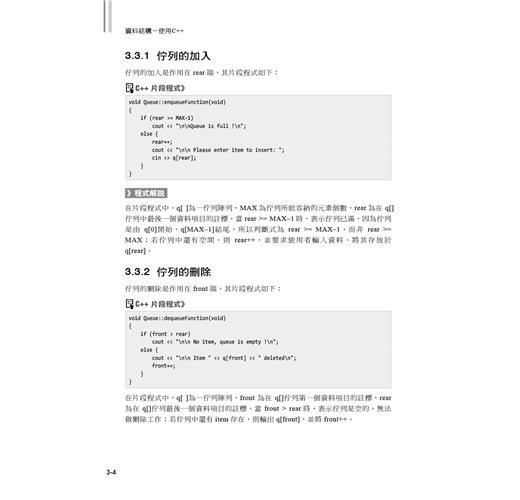 資料結構(Data Structures)是資訊學科中的核心課程之一,也是基礎和必修的科目。本書確實闡述資料結構的每一主題,並以圖文並茂的方式表達之,最能達到教學與學習事半功倍的效果。