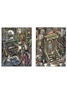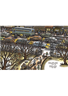 書的扉頁是用大遠景描繪廣闊的天空與大地,還有地面上的城鎮、屋宇,同樣的景物,在前扉頁畫的是下雪前,後扉頁則是正...
