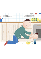 「嘩啦啦!」爸爸聽到豆子灑落一地的聲音,再看到小男孩站在中央,就手扶著額頭嘆氣,眼神充滿責備,小男孩緊張地解釋:「想要幫奶奶找老花眼鏡時,就不小心把豆子打翻了……」爸爸聽到小男孩說的話,才鬆開皺著的眉頭,俯身下來給小男孩一個擁抱:「原來是這樣啊!」