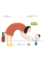 「框啷!」媽媽聽到東西掉落的聲音,一看到小男孩與摔落在地的水杯,立刻雙手叉腰生氣地瞪著他,小男孩表情一臉無辜,原來是想趕快拿水給爸爸喝,才把水杯弄倒了。媽媽聽到小男孩說的話,表情變得柔和,彎下腰來用手臂圈住小男孩,淺淺一笑:「原來是這樣啊!」