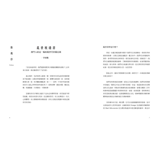 前兩年,幾個澳門創作人就以繪本故事去回應當下時局。《亂世童話》的五個故事來自2015年及2016年澳門藝術節的兩個繪本音樂劇場《異色童話》及《亂世童話》。兩次演出都是集合了文學、插畫、戲劇及現場音樂的跨媒體創作,幾個故事以童話的架構、荒誕的故事及奇幻的繪圖,探討世道人心,可視為當代寓言。當時看畢演出,我就很想出版裡面的故事,讓它們被劇場以外的更多人看到。這次澳門《新生代》雜誌有幸跟我甚為欣賞的八旗出版社聯合出版這本書,是美妙的緣份。