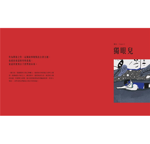故事:一個只有一隻眼睛的小孩已夠嚇人,他預知未來的能力更叫人驚恐。他被視為不祥人,備受排斥,過著流浪生活。他看到人類的厄運,但卻苦無方法改變。他只好把他預知的事編成故事,但沒人相信,人們只把它們視為天馬行空的童話。