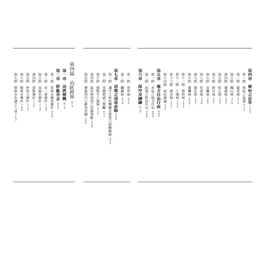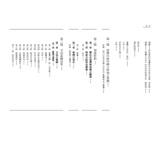 全新審訂版仍分三卷出版,上卷置重點於荷蘭及鄭氏王朝時期的臺灣歷史,以及清朝對於臺灣的政治與軍事治理;中卷則以清朝治下臺灣的教育、社會政策、民俗信仰、經濟治理與交通為論述之中心;下卷之重點則為清朝治下臺灣的對外關係、拓墾與理蕃政策,以及臺灣割讓與日本領臺。