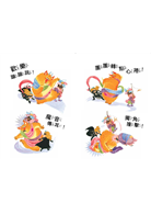 和噴嚏草公主一起吃早午餐一定會有:塗滿奶油的鬆軟麵包,包裹融化起司的煎蛋捲,灑滿糖霜的甜甜圈。 肚子超餓的酷麻花想趕快享用美食,偏偏怪獸鈴聲來搗亂! 當黑衣公主跟黑旋風趕到山羊草原時,只看見草原上有一大群可愛的小兔子。 咦?怪獸呢?