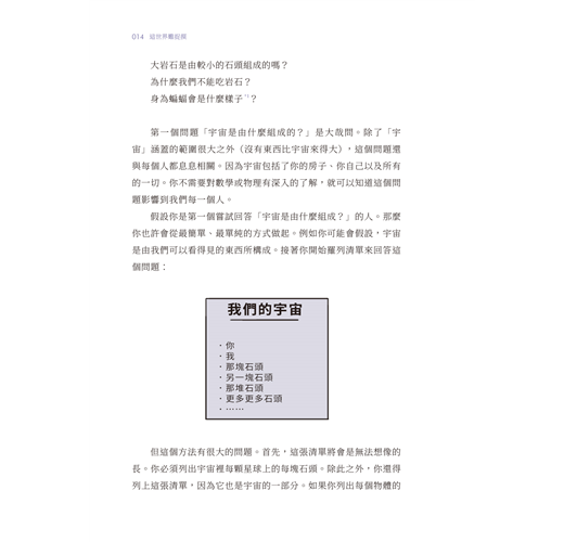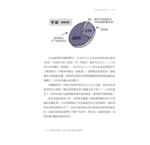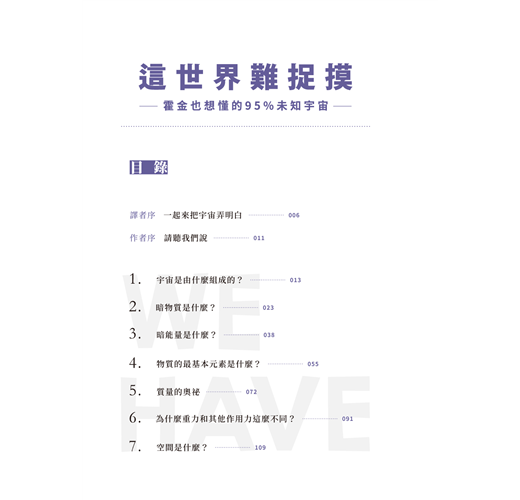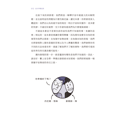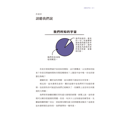 相反的,這本書將告訴你,關於這個宇宙我們所不知道的事情,包括那些你可能認為我們已經解決了,但實際上並沒有任何進展的大問題。