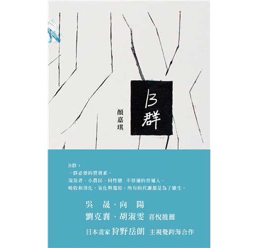 按作者自陳:「B群是一群必要的營養素,以人群來說就是大多數的普通人(跟A咖相比),詩集中無論是流浪動物、農民、都市遊民、同性戀者......都是像B群一樣的存在。」而她自己就混跡其間,黑白雌雄莫辨。不是居高臨下的同情,而是物傷其類的申辯,以及自省。