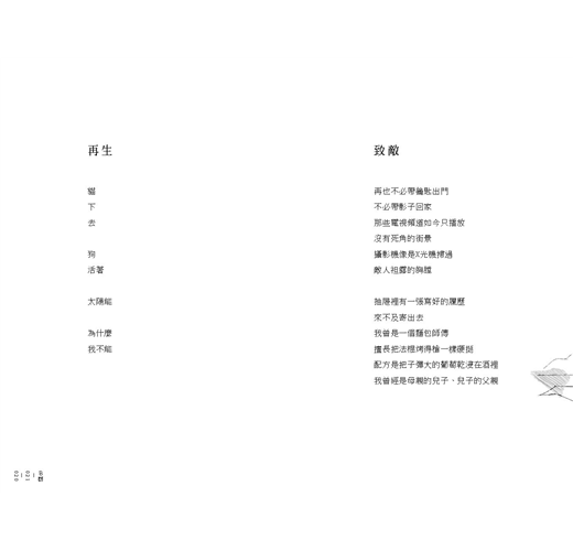 嘉琪的詩都不長,意象與語言卻十分紮實,情緒也相當節制,意味著她不是在利用這些題材作為渲染或鋪陳的柴薪。她有明確的、思慮周密的觀點,需要層層轉遞、反覆辯證,然後壓縮在一首三十行左右的詩裡。