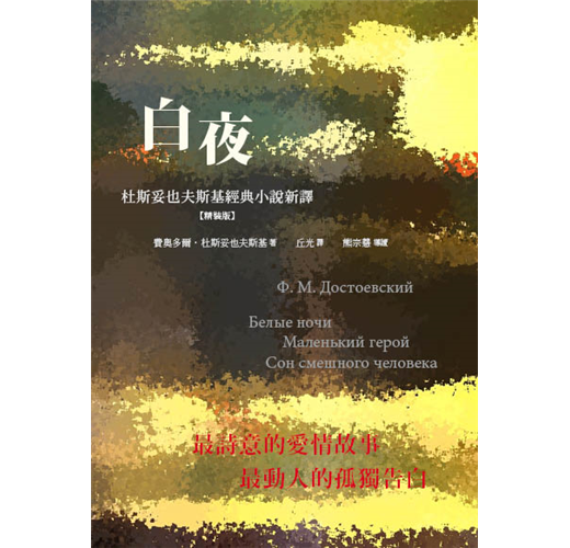 我們有必要從另外一個角度來看杜斯妥也夫斯基,細讀他的中短篇小說,會發現這對他本人和世界都有重大影響,本選集收錄的三篇即是其中經典。〈白夜〉(1848)是作家早期(流放之前)最重要的代表作之一,男主角是一個自認被所有人拋棄的孤獨年輕人──「夢想者」,他沒有朋友,只好跟城市裡的房屋說話,在彼得堡夏季的白夜時分,他在河堤邊邂逅了一位年輕女孩,並好運地幫她解危,相識後兩人談得愉快,在堤岸共處了四個夜晚,讓他孤單的心重新燃起夢想中的幸福希望,然而,在這個看似純真的愛情際遇中,現實的命運卻不如夢想順遂……最終,這令人難忘的四個白夜,是否在夢想者心中留下永恆的美好感受?他是否在浪漫夢想與殘酷現實的衝突之間找到出路?──作者把這個問題留給了讀者。