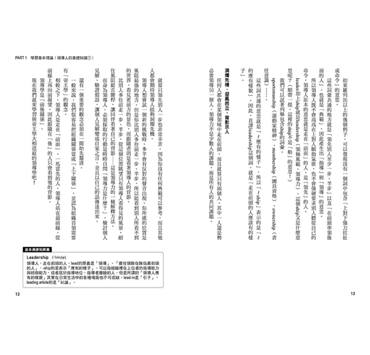 第二,希望讓讀者堅定地踏出步伐,知道該如何發揮領導力,為此,作者會在書中介紹一些領導學相關的理論架構。