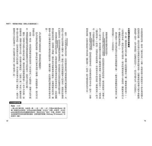 每一小節的標題都會加入動詞,給予有助讀者身體力行的線索,並且強調領導力不僅止於腦袋理解,還必須在實務中實踐。