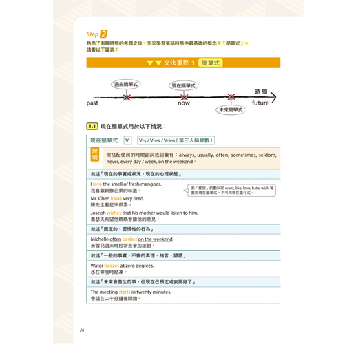 2. 以清楚易懂的表格由淺入深,破解各文法重點觀念。
