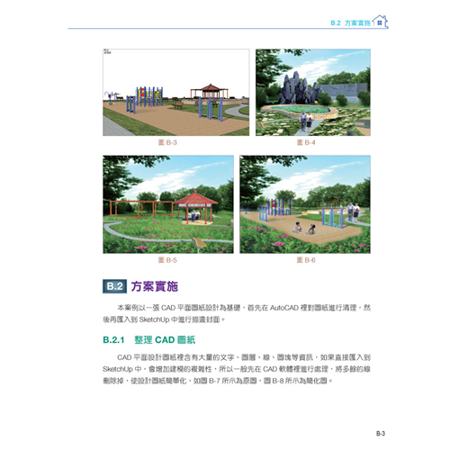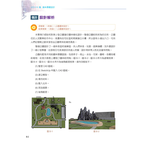 APPENDIX B:介紹SketchUp在園林景觀設計中的應用,主要是對一個公園進行園林設計。