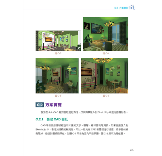 APPENDIX C:介紹SketchUp在室內設計中的應用。如何建立一個室內模型,然後對室內空間進行裝修設計。