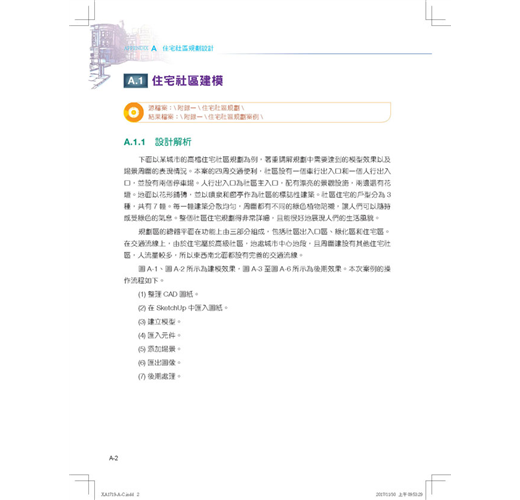 APPENDIX A:介紹SketchUp在住宅規劃設計中的應用。通過兩種不同的方式建立不同的住宅樓為例進行講解,一種是以CAD圖紙為基礎建立住宅社區規劃模型,另一種是自由建立單體住宅樓。