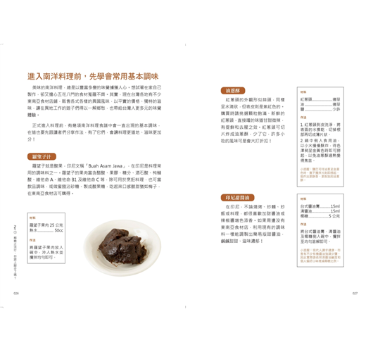 如何做出道地南洋味?書中運用的辛香調味&食材,在台灣皆可購得,跟著步驟一起做,輕鬆複製引人食慾大開的印尼美食。