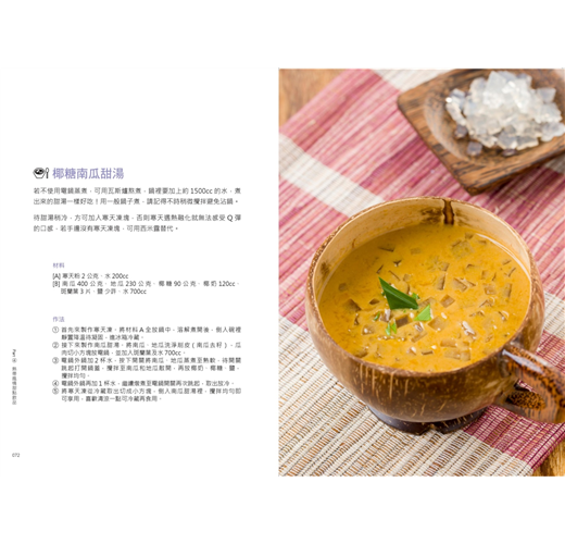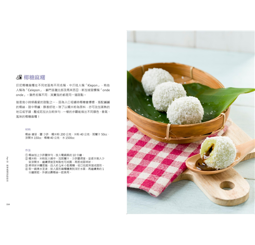 作者身為印尼華僑,對她而言,椰糖不僅是健康、美味的食材,更是甜蜜的記憶。小時候每次家裡做甜點,她總會搶著幫忙將椰糖切細,一邊偷吃椰糖。直到現在,她依然偶爾會在料理時吃幾口椰糖,咀嚼品嚐著甜蜜。書中提供五十道食譜,是作者從小從媽媽、阿姨、舅媽那兒學來的配方,都是具熱帶特色的印尼家常料理、常備甜點,美味簡單,人人都可輕易製作,省略華麗的配方或複雜的製程,秉持一顆重視健康的心,為自己和家人端上一道道營養美味的南洋風味。